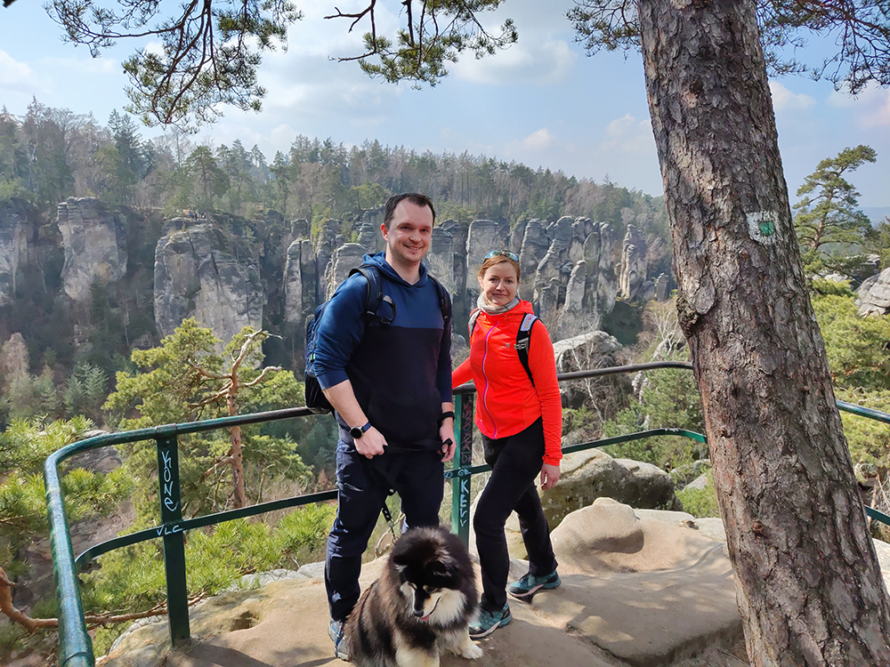 Čehija pārsteidza ne tikai ar savu kalnaino reljefu un skaistajiem mazajiem ciematiņiem, bet arī ar suņiem draudzīgiem dabas parkiem. Atšķirībā no Polijas, kur daudzās dabas takās Tatros ar suņiem ieeja ir liegta, Čehijā ar suni drīkst doties gandrīz visur. Apmeklējām Bohēmijas paradīzes UNESCO mantojuma geoparka skaistās Prahovas klintis (ieejas maksa par suni 10 čehu kronas ~ 0,50 eur), izvēlējamies “zaļo” taku, kas 2 km garumā veda augšup, lejup un caur milzīgajām akmens klintīm. Pa ceļam satikām vismaz 20 suņus. Lielākoties suņu saimnieki viens otru cienīja, pagaidot vai palaižot garām, lai izvairītos no nevajadzīgām konfliktsituācijām.