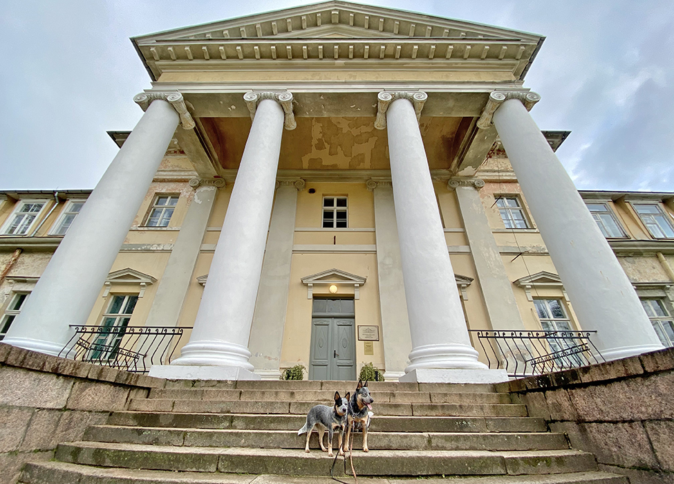 Jau pašā takas sākumā ļāvām suņiem izskrieties, suņus pie pavadas likām tikai vietās, kad parādījās citi cilvēki, kā arī Krimuldas muižas teritorijā.